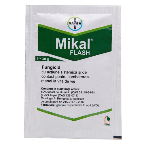Mikal Flash are acţiune preventivă excelentă asupra ciupercilor patogene, împiedicând germinarea sporilor şi creşterea miceliului. Mikal Flash este unul dintre puţinele produse destinate combaterii manei care posedă sistemicitate completă ascendentă şi descendentă, translocându-se în creşterile noi, inclusiv la nivelul ciorchinelui în stadiu erbaceu.